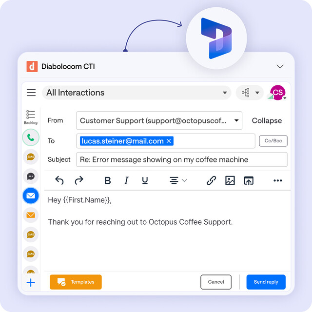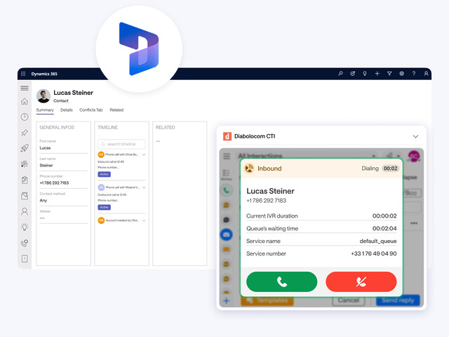Mit der Microsoft Dynamics Telefonintegration von Diabolocom genießen Sie erstklassige Sprachqualität und minimale Latenz für glasklare Gespräche. Ihre Teams können Anrufe direkt in Microsoft Dynamics tätigen und empfangen – ohne Unterbrechungen oder Informationsverluste.
